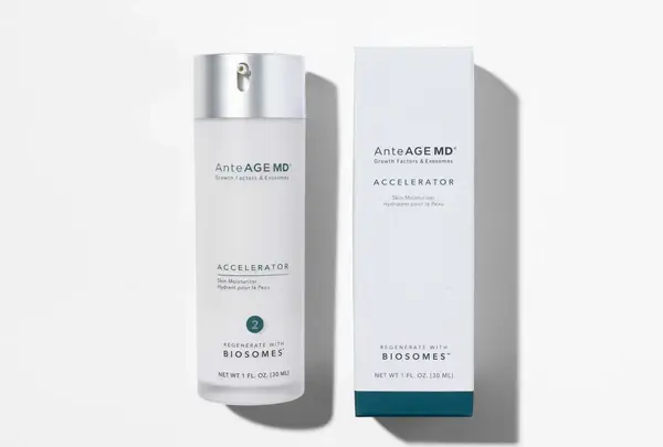 AnteAGE MD® Biosome™ Accelerator is packed with powerful actives including BiosomesTM, vitamins C and E, bakuchiol, a retinol alternative, and growth factors to activate repair at the cellular level.